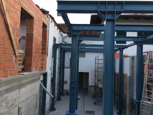 Il progetto strutturale prevede il recupero di strutture esistenti e la realizzazione di nuove strutture (muratura portante, strutture in legno, carpenterie in acciaio, solai collaboranti acciaio-cls).
